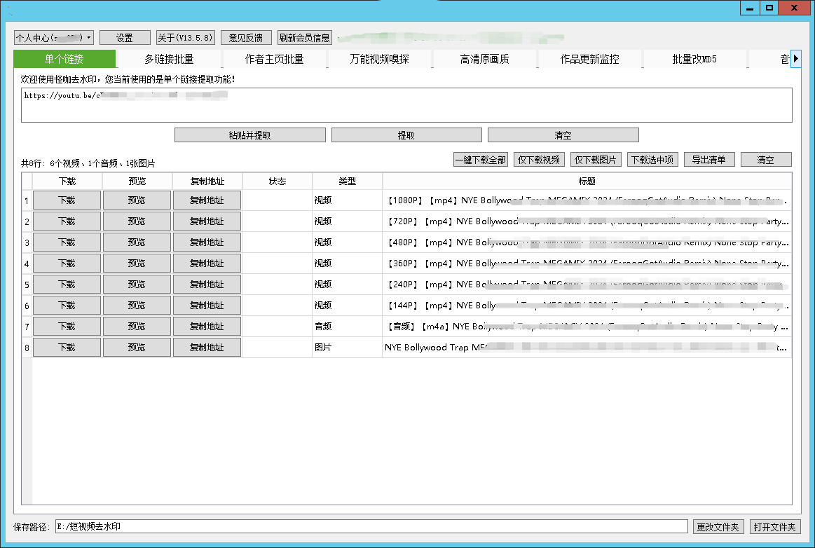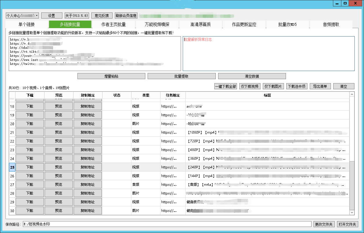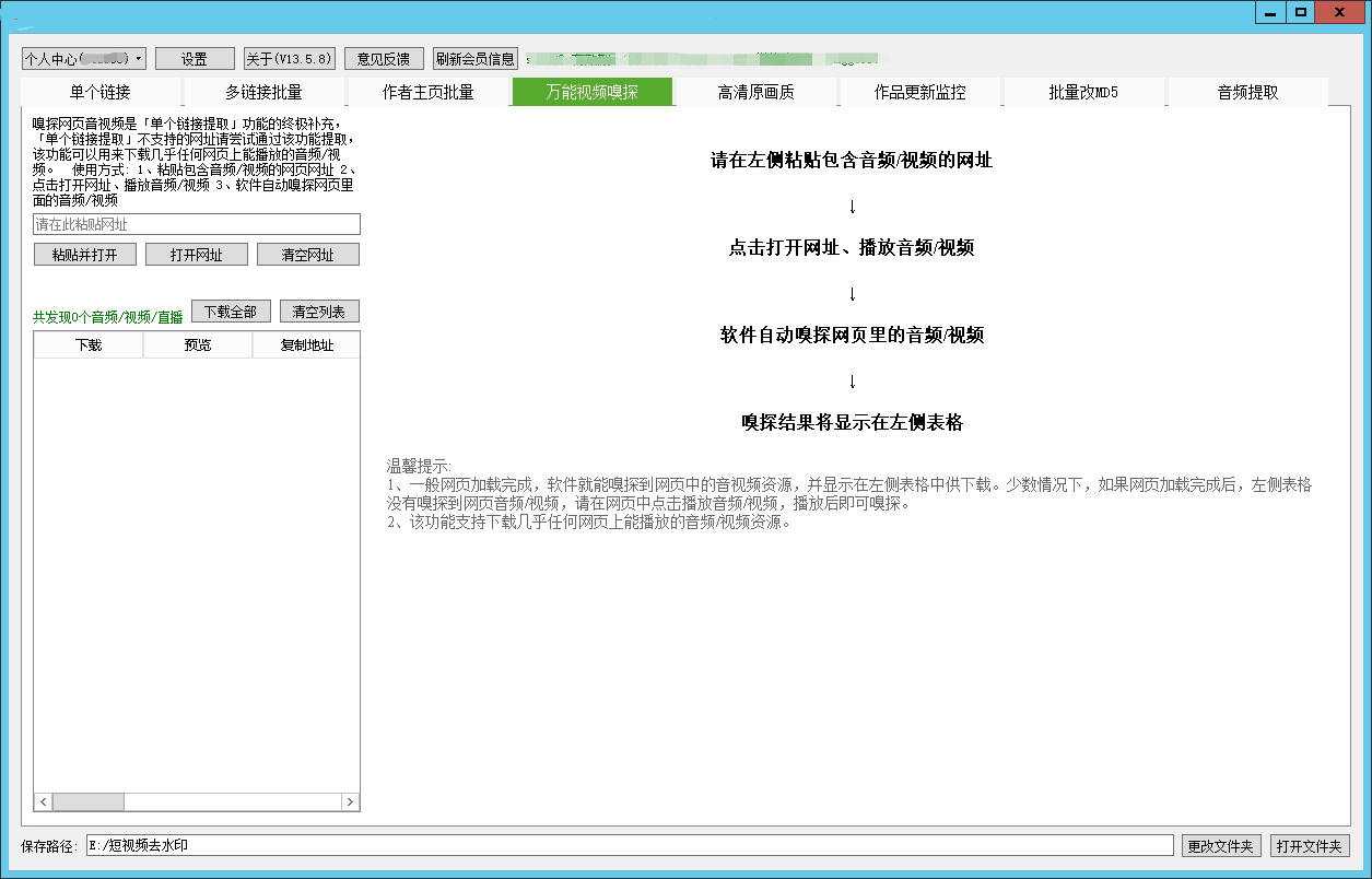 PC软件不仅可以批量提取,还支持一键下载全部视频/图片、万能的网页音频/视频嗅探、一键修改视频MD5、从视频提取音频等,操作简单!